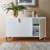 En tant que buffet de salon, vous pouvez facilement désencombrer votre espace grâce aux étagères intérieures. Rangez les jeux de famille, les couvertures de rechange et les autres éléments essentiels de la vie grâce à cette solution de rangement élégante.