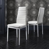 Les chaises à haut dossier sont confortables et disposent d'un dossier ergonomique pour un meilleur soutien - parfait pour passer de longues soirées conviviales. Le revêtement similicuir est également facile d'entretien. Le plateau de table en verre repose sur des pieds en acier blanc laqué pour parfaire le tout.