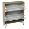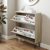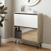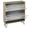 Un design moderne qui se prête au style scandinave, l'armoire à chaussures à deux portes Anderson est dotée de pieds en métal noir en forme d'épingle, un élément tendance qui contraste parfaitement avec le bois naturel.