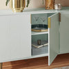 Utilisez Gloria comme buffet de salon, le meuble idéal pour ranger vos couvertures de rechange et les jeux de société de la famille. Ou associez ce buffet vert sauge à votre salle à manger, pour une version moderne d'un service de boissons.