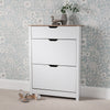 Ce meuble à chaussures étroit blanc est ce qu'il faut à votre couloir, vous offrant un endroit pour ranger toutes vos chaussures ainsi qu'une surface pratique pour placer les clés et autres objets avant de quitter la maison. Il a des tiroirs profonds qui permettent un rangement organisé des chaussures. Les tiroirs s'ouvrent avec un angle de 45 degrés.