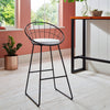 Le tabouret en métal Jimmy a un design accrocheur, avec un dossier en fil de fer et une structure en métal à pieds larges offrant une construction robuste, durable et de soutien.